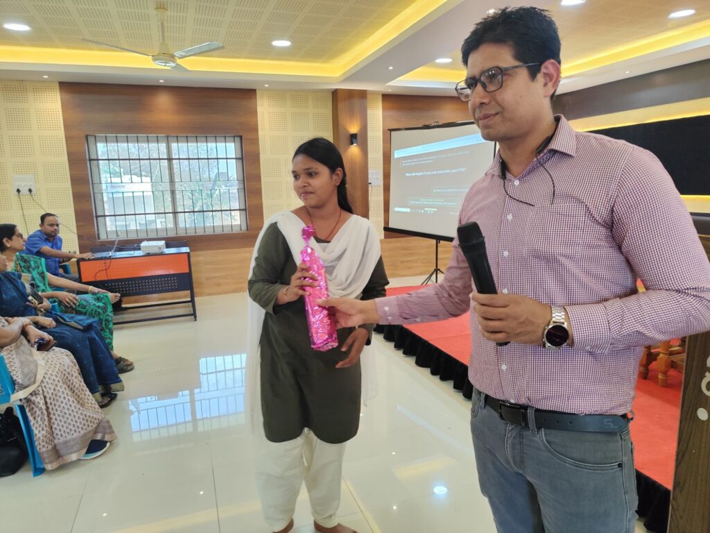 ସାଇବର ସଚେତନତା ପିପିଟି ଶ୍ରୀଯୁକ୍ତ ପଣ୍ଡା ବିଭିନ୍ନ ପ୍ରକାରର ସାଇବର ଠକେଇ ଯଥା ଡିଜିଟାଲ୍ ଆରେଷ୍ଟ, ଫିସିଂ ଏବଂ ଏ.ଆଇ. ଭଏସ କ୍ଲୋନିଂ ସ୍କାମ୍ ସମ୍ପର୍କରେ ଛାତ୍ରୀମାନଙ୍କୁ ସବିଶେଷ ତଥ୍ୟ ପ୍ରଦାନ କରିଥିଲେ ।ପାସୱାର୍ଡର ସୁରକ୍ଷା, ଦୁଇ-ପର୍ଯ୍ୟାୟ ପ୍ରାମାଣିକିକରଣ  ଏବଂ ଅପରିଚିତ ଲିଙ୍କ ଉପରେ କ୍ଲିକ୍ ନ କରିବା ପାଇଁ ପରାମର୍ଶ ଦିଆଯାଇଥିଲା । ୟୁପିଆଇ  ବ୍ୟବହାର ସମୟରେ କିପରି ସତର୍କ ରହିବାକୁ ହେବ, ସେ ବିଷୟରେ ଆଲୋଚନା ହୋଇଥିଲା  ସାମ୍ପ୍ରତିକ ସମୟରେ ଏ.ଆଇ. ର ବ୍ୟବହାର ବଢ଼ୁଥ‌ିବାରୁ ଏହାର ସୁଯୋଗ ଓ ବିପଦ ସମ୍ପର୍କରେ ଛାତ୍ରୀମାନଙ୍କୁ ସଚେତନ କରାଯାଇଥିଲା । ଉଭୟ ଛାତ୍ରୀ ଏବଂ କର୍ମଚାରୀମାନେ ଅନଲାଇନ କୁଇଜ ପ୍ରତିଯୋଗିତାରେ ଅଂଶଗ୍ରହଣ କରି ପ୍ରମାଣପତ୍ର ହାସଲ କରିବା ସହ ଇଣ୍ଟରନେଟକୁ ସୁରକ୍ଷିତ ଭାବେ ବ୍ୟବହାର କରିବା ପାଇଁ ଶପଥ ଗ୍ରହଣ କରିଥିଲେ ।