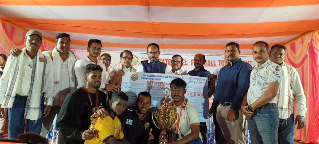 ରଣପୁର,୧୪/୦୨:ନୟାଗଡ ଜିଲ୍ଲା ରଣପୁର ବ୍ଲକ ଅନ୍ତର୍ଗତ ରାଜସୁନାଖଳା ଫ୍ରେଣ୍ଡସ ସ୍ପୋର୍ଟସ କ୍ଲବ ଆନୁକୂଲ୍ୟରେ ରାଜସୁନାଖଳା ସରକାରୀ ଉଚ୍ଚ ବିଦ୍ୟାଳୟ ଖେଳ ପଡିଆରେ ୨୨ତମ ରାଜ୍ୟ ସ୍ତରୀୟ ଫୁଟବଲ ଟୁର୍ଣ୍ଣାମେଣ୍ଟର ଫାଇନାଲ ମ୍ୟାଚ ପପୁଲାର କ୍ଲବ ଢେଙ୍କାନାଳ ଓ ସାନ୍ କ୍ଲବ ଭୁବନେଶ୍ୱର ମଧ୍ୟରେ ଅନୁଷ୍ଠିତ ହୋଇଯାଇଛି। ଫ୍ରେଣ୍ଡସ ସ୍ପୋର୍ଟସ କ୍ଲବର ସଭାପତି ପୂର୍ଣ୍ଣ ଚନ୍ଦ୍ର ନାୟକଙ୍କ ସଭାପତିତ୍ବରେ ମୁଖ୍ୟ ଅତିଥି ଭାବରେ ନୟାଗଡ଼ ଜିଲ୍ଲାପରିଷଦ ଅଧ୍ୟକ୍ଷ ଦେବାଶିଷ ପଟ୍ଟନାୟକ, ସମ୍ମାନିତ ଅତିଥି ଭାବେ ନୟାଗଡ଼ ବସ୍ ମାଲିକ ସଂଘ ସଭାପତି ମନୋଜ ନାୟକ , ବସ ମାଲିକ ସଂଘ ସଂପାଦକ ଶେଖ୍ ଇସୁଫୁ, ସରକାରୀ ଉଚ୍ଚ ବିଦ୍ୟାଳୟ,ପ୍ରଧାନ ଶିକ୍ଷକପ୍ରକାଶ କୁମାର ସାହୁ ପ୍ରମୁଖ ଯୋଗ ଦେଇଥିଲେ। ଏହି ମ୍ୟାଚରେ ଅତିଥିମାନେ ଓ ଫ୍ରେଣ୍ଡସ ସ୍ପୋର୍ଟସ କ୍ଲବର ସଦସ୍ୟମାନେ ପଡିଆ ମଧ୍ୟରେ ଖେଳାଳି ମାନଙ୍କ ସହ କର ମର୍ଦନ କରି ଉତ୍ତମ ଓ ସୁନ୍ଦର ଖେଳ ପ୍ରଦର୍ଶନ କରିବା ପାଇଁ ଖେଳାଳି ମାନଙ୍କୁ ଉତ୍ସାହିତ କରିଥିଲେ ଟୁର୍ଣ୍ଣାମେଣ୍ଟର ଫାଇନାଲ ମ୍ୟାଚରେ ପପୁଲାର କ୍ଲବ ଢେଙ୍କାନାଳ ଓ ସାନ୍ କ୍ଲବ ଭୁବନେଶ୍ୱର ମଧ୍ୟରେ ସଂଘର୍ଷ ପୂର୍ଣ୍ଣ ମ୍ୟାଚ ହୋଇଥିଲା ।
