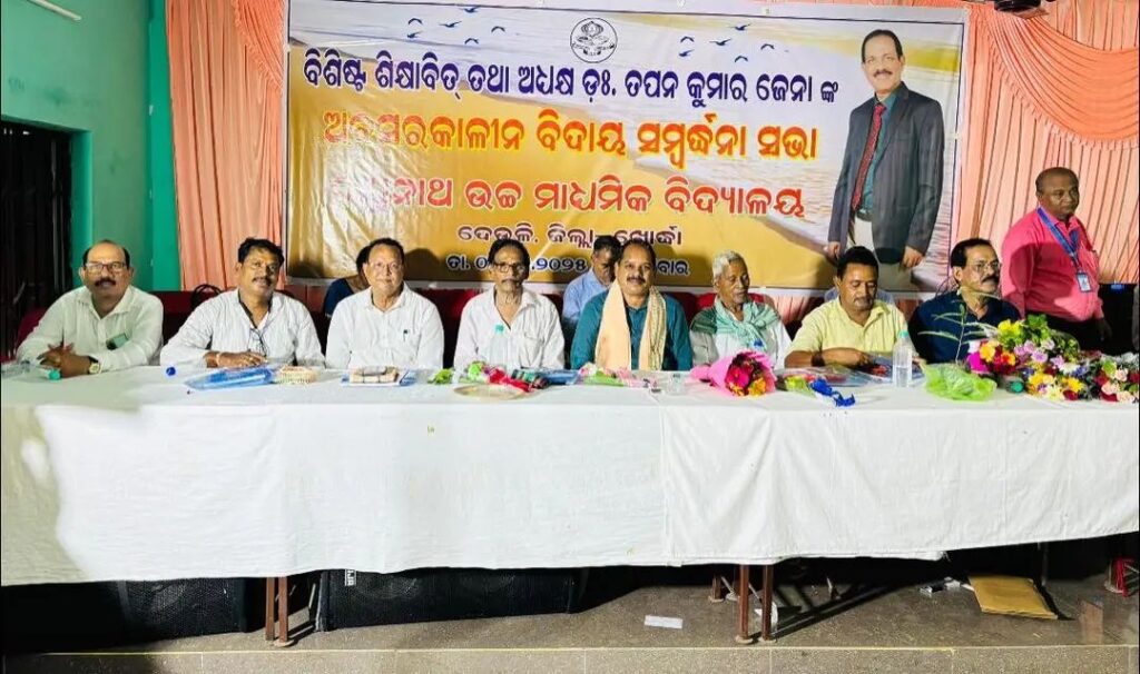 ଖୋର୍ଦ୍ଧା :- ବୋଲଗଡ଼ ବ୍ଲକ ଦେଉଳି ସ୍ଥିତ ରଘୁନାଥ ଉଚ୍ଚ ମାଧ୍ୟମିକ ବିଦ୍ୟାଳୟର ଅଧ୍ୟକ୍ଷ ଡ଼ଃ ତପନ କୁମାର ଜେନା ଚାକିରୀ କାର୍ଯ୍ୟକାଳ ସମାପନ ହେତୁ ତାଙ୍କୁ ଅବସର କାଳୀନ ବିଦାୟ ସମ୍ବର୍ଦ୍ଧନା ଦିଆଯାଇଅଛି। ବିଦ୍ୟାଳୟର ନୂତନ ଅଧକ୍ଷ ରାମଚନ୍ଦ୍ର ଜେନାଙ୍କ ସଭାପତିତ୍ବରେ ଆୟୋଜିତ ସଭାରେ ମୁଖ୍ୟ ଅତିଥି ବେଗୁନିଆ ବିଧାୟକ ଶ୍ରୀ ପ୍ରଦୀପ କୁମାର ସାହୁ, ସମସ୍ତ ଅଧ୍ୟାପକ ଅଧ୍ୟାପିକା, ଛାତ୍ର ଛାତ୍ରୀ, ନିମନ୍ତ୍ରୀତ ଅତିଥି ଓ ପୂରାତନ ଛାତ୍ର ଛାତ୍ରୀ କର୍ମଚାରୀ ଯୋଗ ଦେଇଥିଲେ।
