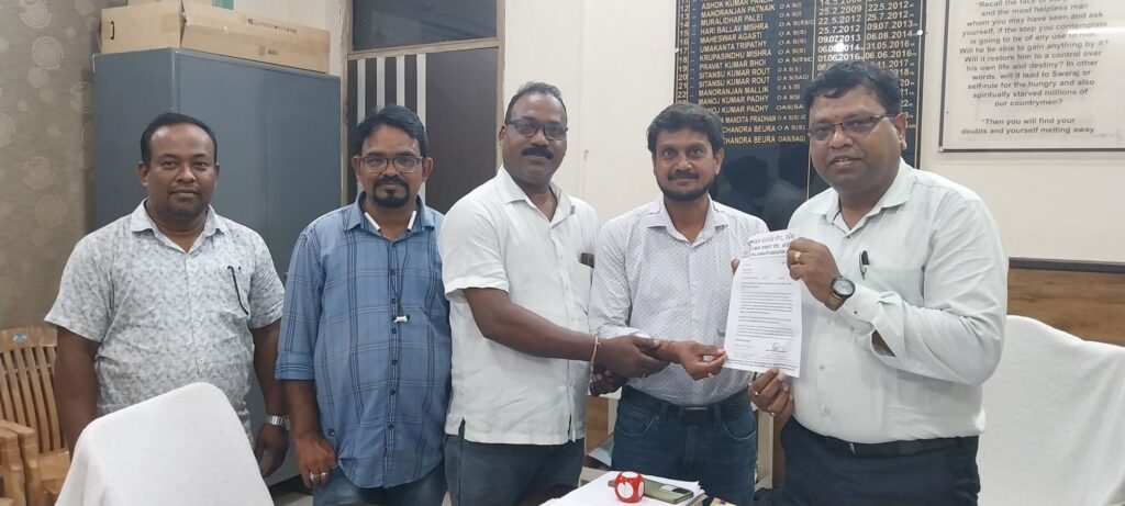 ଖୋରଧା ;- ଉତ୍କଳ ସାମ୍ବାଦିକ ସଂଘ ସହବନ୍ଧିତ ଖୋର୍ଦ୍ଧା ଜିଲ୍ଲା ସାମ୍ବାଦିକ ସଂଘ ପକ୍ଷରୁ ଏକ ପ୍ରତିନିଧି ମଣ୍ଡଳୀ ଵିଭିନ୍ନ ଦାବି ନେଇ ମୁଖ୍ୟମନ୍ତ୍ରୀଙ୍କ ଉଦ୍ଦେଶ୍ୟରେ ଅତିରିକ୍ତ ଜିଲ୍ଲାପାଳ ଶ୍ରୀ ପ୍ରତାପ ଚନ୍ଦ୍ର ବେଉରାଙ୍କୁ ଆଜି ଦାବିପତ୍ର ପ୍ରଦାନ କରିଛନ୍ତୁ ।