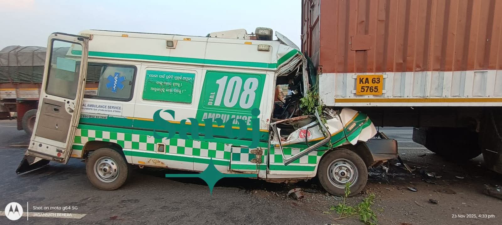 ୧୦୮ ଆମ୍ବୁଲାନ୍ସ ଦୁର୍ଘଟଣାଗସ୍ତ ଖୋର୍ଦ୍ଧା, (୨୩/୧୧):- କୁହୁଡି ଓଭର ବ୍ରିଜ ଉପରେ ୧୦୮ ଆମ୍ବୁଲାନ୍ସ ଦୁର୍ଘଟଣା, ଫାର୍ମାସିଷ୍ଟ ସହ ୩ କର୍ମଚାରୀ ଗୁରୁତର, ଟାଙ୍ଗୀ ମେଡିକାଲରୁ ଭୁବନେଶ୍ୱର ସ୍ଥାନାନ୍ତର, ବାଲୁଗାଁ ଯାଉଥିଲା…