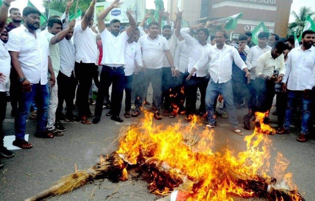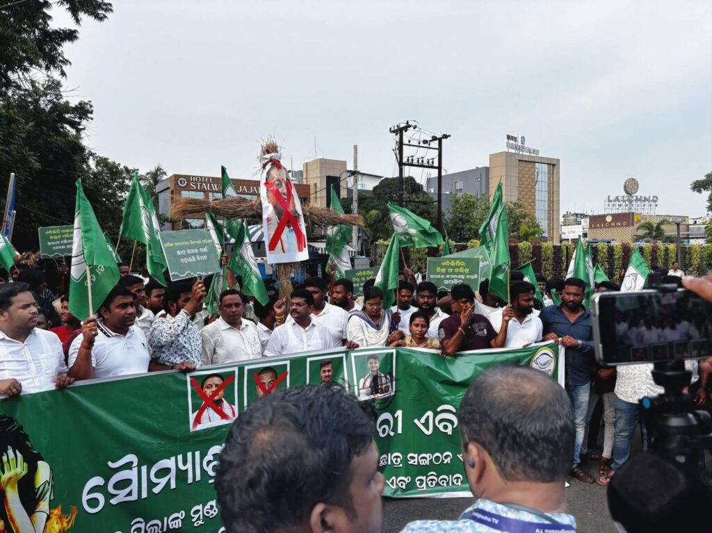 ଭୁବନେଶ୍ଵର: – ବିଜୁ ଯୁବ ଓ ଛାତ୍ର ଜନତା ଦଳ ପକ୍ଷରୁ ଆଜି ମାଷ୍ଟରକ୍ୟାଣ୍ଟିନ ଛକଠାରେ ନାରୀ ସୁରକ୍ଷା ପ୍ରସଙ୍ଗ ଏବଂ ଏବିଭିପି ବିରୋଧରେ ବିକ୍ଷୋଭ କରାଯାଇଛି। ଏହି ଅବସରରେ ମୁଖ୍ୟମନ୍ତ୍ରୀ, ଉପମୁଖ୍ୟମନ୍ତ୍ରୀ ଓ ଉଚ୍ଚଶିକ୍ଷା ମନ୍ତ୍ରୀଙ୍କ କୁଶପୁତ୍ତଳିକା ଦାହ କରାଯାଇ ସେମାନଙ୍କ ଇସ୍ତଫା ଦାବି କରାଯାଇଥିଲା।
