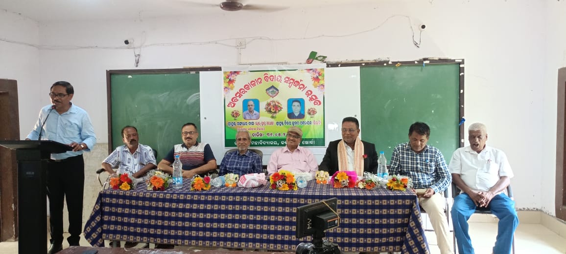 ଖୋର୍ଦ୍ଧା: – (ଶୁଭ ଖବର)ବେଗୁନିଆ ବ୍ଲକ ଅନ୍ତର୍ଗତ କଣ୍ଟାବାଡ ଗ୍ରାମସ୍ଥିତ ରମାମଣି ମହାବିଦ୍ୟାଳୟର ଅଧ୍ୟକ୍ଷ ପ୍ରଫେସର ଗଙ୍ଗାଧର ଦାଶ ଓ ଖେଳ ଶିକ୍ଷକ ବିଜୟ କୁମାର ପଟ୍ଟନାୟକଙ୍କ ଅବସର କାଳୀନ ସମ୍ବର୍ଦ୍ଧନା ଉତ୍ସବ ଅନୁଷ୍ଠିତ ହୋଇଛି । ଏଥିରେ ପରିଚାଳନା କମିଟି  ପୂର୍ବତନ ସଭାପତି ପ୍ରଫୁଲ୍ଲ କୁମାର ରଥଙ୍କ ଅଧ୍ୟକ୍ଷତା ଓ ଅଧ୍ୟାପକ ଦିଲୀପ କୁମାର ସାଥୁଆଙ୍କ ସଂଯୋଜନାରେ ଅବସରପ୍ରାପ୍ତ ପ୍ରାଧ୍ୟାପକ ରବି ନାରାୟଣ ପଣ୍ଡା ମୁଖ୍ୟ ଅତିଥି,ଓ ନୂତନ ଅଧ୍ୟକ୍ଷ ପ୍ରାଧ୍ୟାପକ ନାରାୟଣ ବନ୍ଧୁ ପଟ୍ଟନାୟକ ମୁଖ୍ୟବକ୍ତା ଭାବେ ଯୋଗ ଦେଇ ଅବସର ଗ୍ରହଣ କରିଥିବା ଅଧ୍ୟକ୍ଷ ଓ ଖେଳ ଶିକ୍ଷକଙ୍କ କର୍ମମୟ ଜୀବନ ଉପରେ ଅଧ୍ୟାପକ/ଅଧ୍ୟାପିକା ଓ କର୍ମଚାରୀ ଆଲୋକପାତ କରିଥିଲେ।