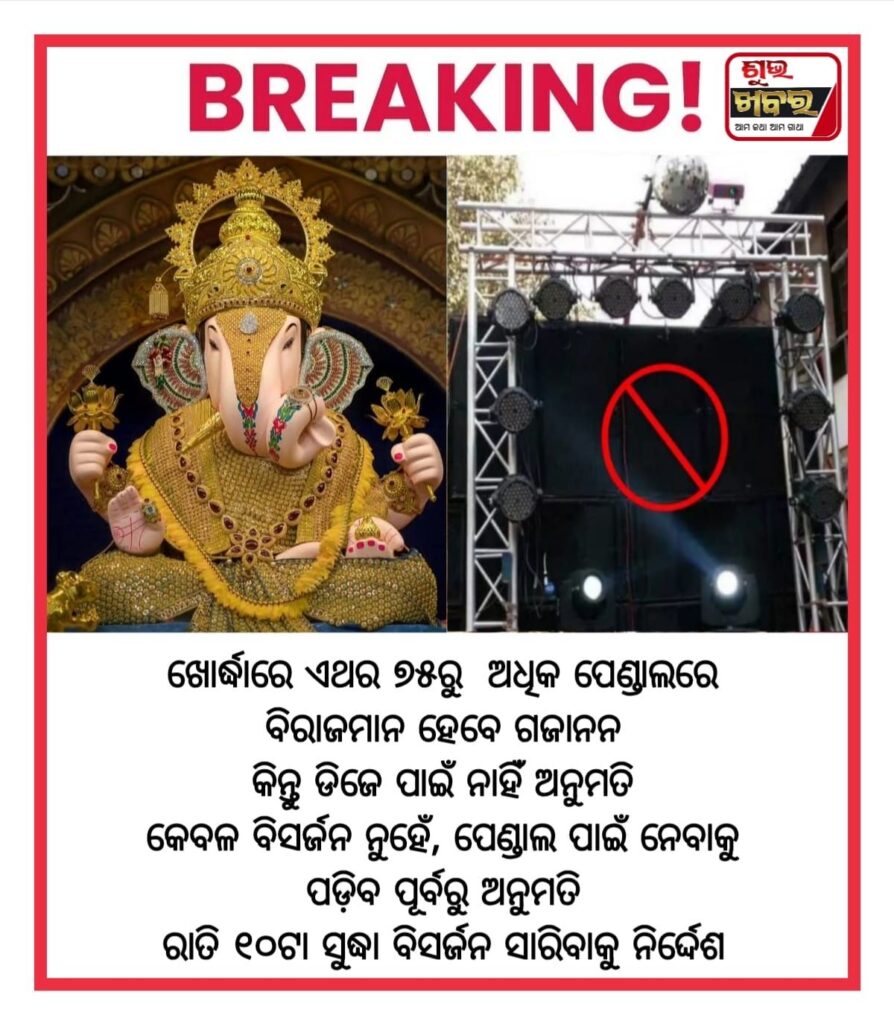 ରାଜ୍ୟ ଗଣେଶ ପୂଜା ଭସାଣୀ ରେ ଡ଼ିଜେ ମନା Subha KhabarAugust 22, 2025 ଖୋର୍ଦ୍ଧା :- ଗଣେଶ ପୂଜା ଭସାଣୀ ରେ ଡ଼ିଜେ ମନା ପାଇଁ ନିର୍ଦ୍ଦେଶ ଦେଇଛି ପ୍ରଶାସନ । ଖୋର୍ଦ୍ଧା ଗଣେଶ ପୂଜା ଭସାଣୀ ରେ ଡ଼ିଜେ ମନା। Advertisement Subha Khabar is now on Whatsapp Join and get latest news update delivered to you via whatsapp Join Now