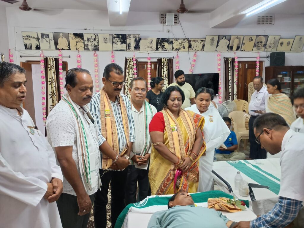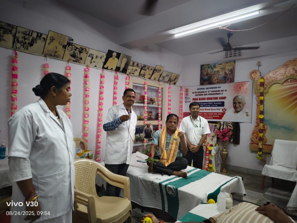 This camp organized in the memory of Dadi Prakashmani Ji is a great example of service to humanity”. She praised the social service of the organization and wished for the success of the event.Many people came forward with the spirit of service and donated blood for the nobel cause. A total of 44 units of blood were collected in the camp.Khordha Blood Bank in-charge, Dr. Saurav Sundar Ray,technicians Arun Kumar Sahu, Jhunu Lata Sahu,Laxmi Priya Pradhan,Jhansi Rani Patra were actively assist in blood collection by performing venipuncture, preparing the donor, collecting blood into bags, managing collection process and providing donor care and instructions. They follow strict safety protocols to ensure the donor’s wellbeing and the collected blood’s safety for future transfusions.