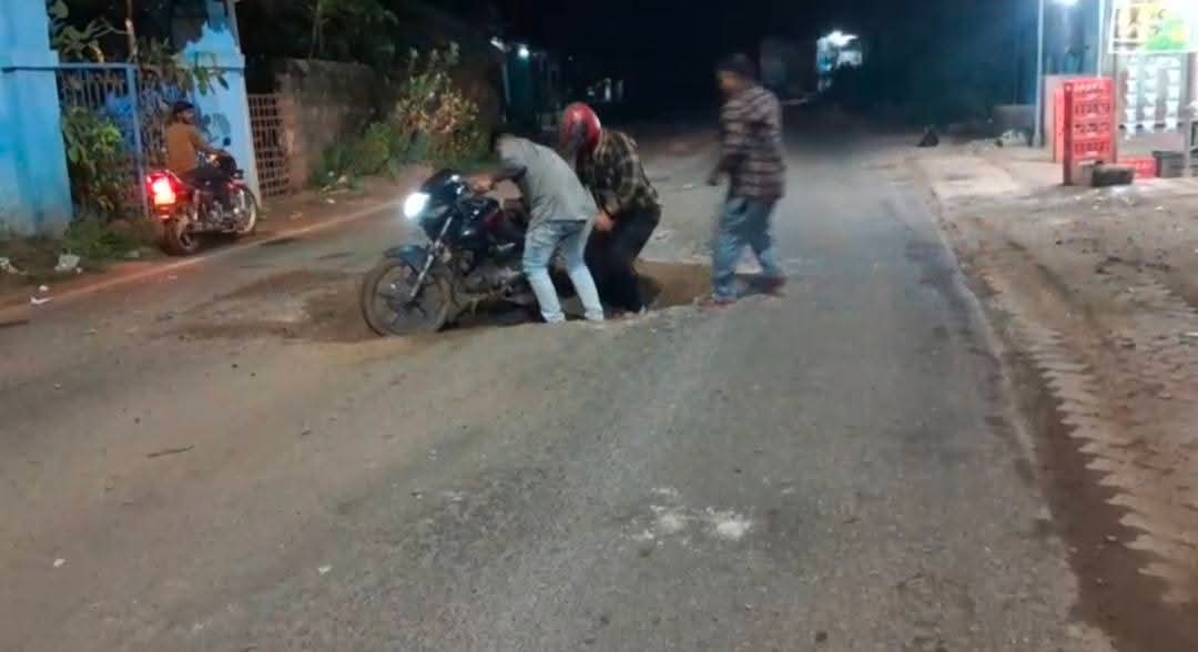 ଖୋର୍ଦ୍ଧା ;- ୫୭ ନଂ ଖୋରଧା ବଲାଙ୍ଗୀର ଜାତୀୟ ରାଜପଥ ର ବାଘମାରି ଠାରେ ରାଜପଥରେ ଗର୍ତ୍ତ ଦେଖିବାକୁ ମିଳିଛି । ଯାହା ଫଳରେ ବାଇକୀ ଆରୋହୀ ବହୁତ୍ ଅସୁବିଧା ର ସମ୍ମୁଖୀନ ହେଉଛନ୍ତି । ଜାତୀୟ ରାଜପଥ ଦେଇ ପ୍ରତ୍ୟେକ ଦିନ ବହୁ ଲଘୁ ଯାନ ଓ ଭାରି ଯାନ ଯାତାୟାତ କରିଥାନ୍ତି । ଲାଇଟ୍ ହିଁ ତାଙ୍କୁ ବାଟ ଦେଖାଇ ..ରାତିରେ ରାସ୍ତା କୁ କେହି ଦେଖନ୍ତି ନାହିଁ ବୋଲି କିଛି ଚାଳକ କହିଛନ୍ତି ।