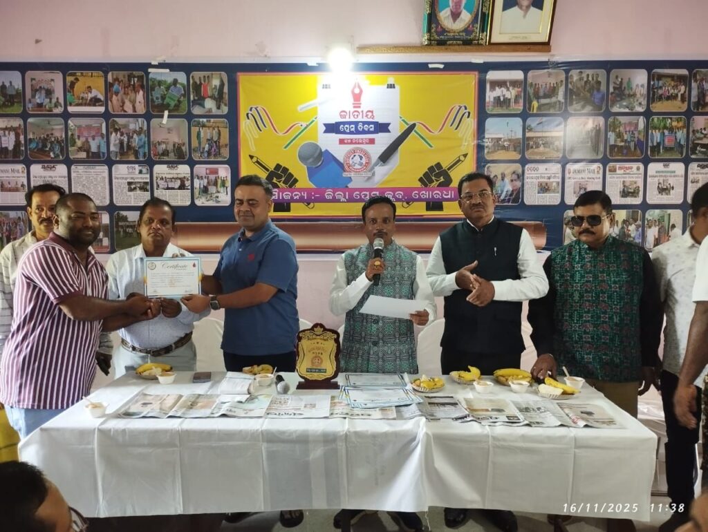 ଖୋର୍ଦ୍ଧା-୧୬/୧୧-ଜାତୀୟ ପ୍ରେସ ଦିବସ ଉପଲକ୍ଷେ ଜିଲ୍ଲା ପ୍ରେସ କ୍ଲବ ପକ୍ଷରୁ ସାମ୍ବାଦିକ ଭବନ ଠାରେ ଏକ ଆଲୋଚନା ଚକ୍ର ର ଅୟୋଜନ ସହିତ ରକ୍ତଦାନ ଶିବିର ଅନୁଷ୍ଠିତ ହୋଇଯାଇଅଛି l