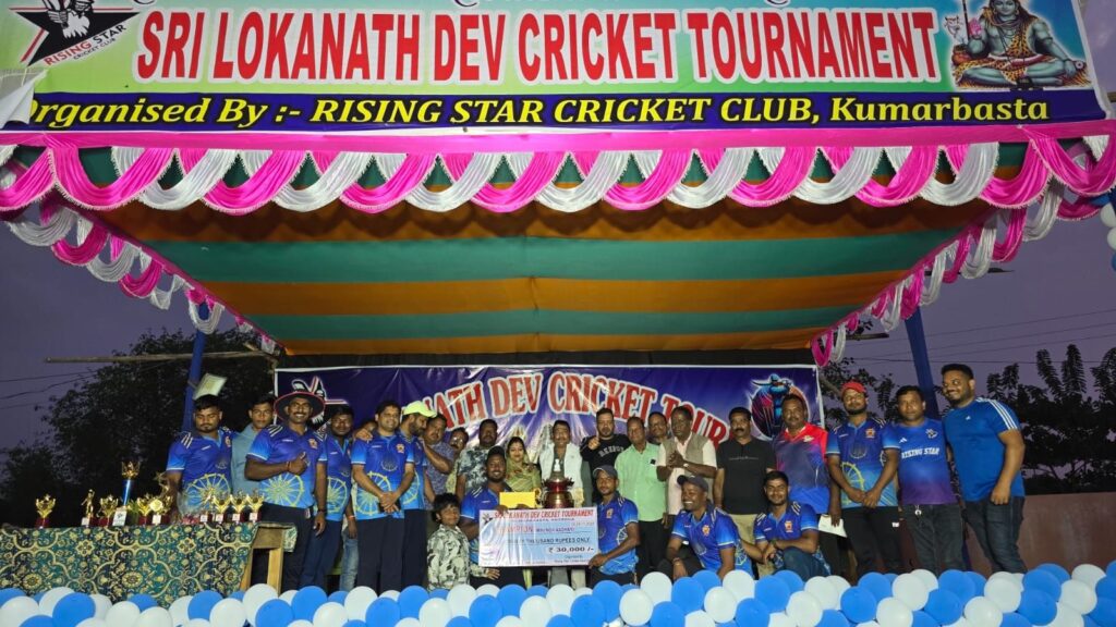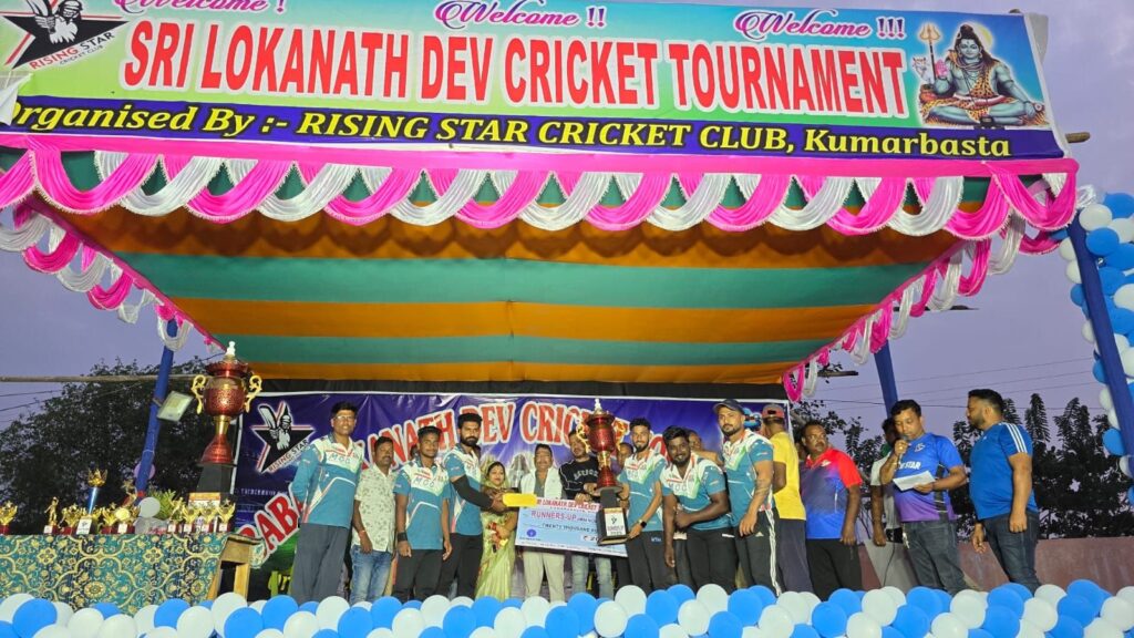 ଖୋର୍ଦ୍ଧା,(୨୯/୧୧):- ଖୋର୍ଦ୍ଧା ଉପକଣ୍ଠ କୁମାରବସ୍ତ ଖେଳପଡିଆ ଠାରେ ରାଇଜିଙ୍ଗଷ୍ଟାର କ୍ରିକେଟ କ୍ଲବ, କୁମାରବସ୍ତ ଆନୁକୂଲ୍ୟରେ ଲୋକନାଥଦେବ କ୍ରିକେଟ ଟୁର୍ଣ୍ଣାମେଣ୍ଟ ର ପ୍ରଥମ ମ୍ୟାଚରେ ଆଇ ଆର ବି ଦଳ ପଳାଶପୁର ଦଳ କୁ ୫ ୱିକେଟରେ ପରାସ୍ତ କରିଛି । ପଳାଶପୁର ଦଳ ପ୍ରଥମେ ବ୍ୟାଟିଂ କରି ନିର୍ଦ୍ଧାରିତ ୧୫ ଓଭର ରେ ୬ ୱିକେଟ ହରାଇ ୧୩୭ ରନ୍ ସଂଗ୍ରହ କରିଥିଲା।ଜବାବ ଆଇ ଆର ବି ଦଳ ୧୪ ଓଭର ରେ ଆବଶ୍ୟକ ୧୩୮ ରନ୍ ସଂଗ୍ରହ କରି ବିଜୟୀ ହୋଇ ଚମ୍ପିୟାନ ଆଖ୍ୟା ଅର୍ଜନ କରିଥିଲା। ଦଳ ପକ୍ଷରୁ ହେମନ୍ତ ପ୍ରଧାନ ଧୂଆଁଧାର ୩୧ ରନ ସଂଗ୍ରହ କରି ଶ୍ରେଷ୍ଠ ଖେଳାଳି ବିବେଚିତ ହୋଇଥିଲେ।