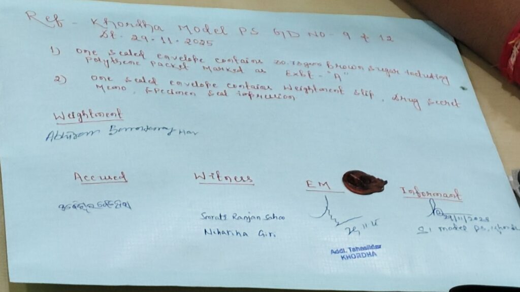 ଏଥି ସହିତ ଅଭିଯୁକ୍ତ ଠାରୁ ବାଇକ୍, ମୋବାଇଲ, ୧୫୦୦ଟଙ୍କା ଜବତ କରି ଗିରଫ କରିଛି ଆଦର୍ଶ ଥାନା ପୋଲିସ । ଖୋର୍ଦ୍ଧା ଜିଲ୍ଲାରେ ବିଭିନ୍ନ ଥାନା ଅଞ୍ଚଳ ରେ ବ୍ରାଉନ ସୁଗାର କାରବାର ରେ ନୂଆ ନୂଆ ଯୁବକ ମାନେ ନିୟୋଜିତ ହେଉଛନ୍ତି। ସେ ସମ୍ପର୍କ ରେ ପୋଲିସ ର ଅନୁସନ୍ଧାନ ଜାରୀ ରଖିଛନ୍ତି ।