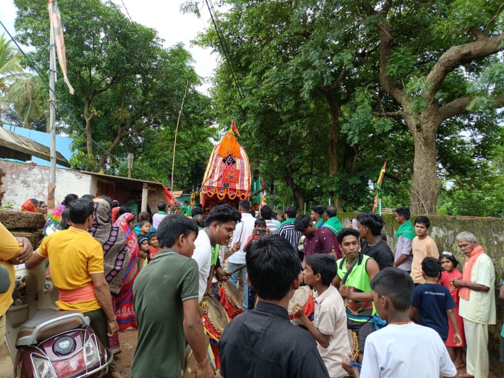 Khordha:- (Subha Khabar)The Bahuda Yatra of Lord Jagannath was celebrated with great pomp in Lokeswarpur near Khordha. Bhajans & chants were performed every evening for eight days.Today, after all the rituals & chants of Mahaprabhu were completed, the Chaturdha idol was taken out in a chariot & the chariot procession began.The devotees pulled the chariot for three kilometers. Keeping in mind the large gathering of devotees, police were deployed by Khordha Model PS, to maintain law &order situation.