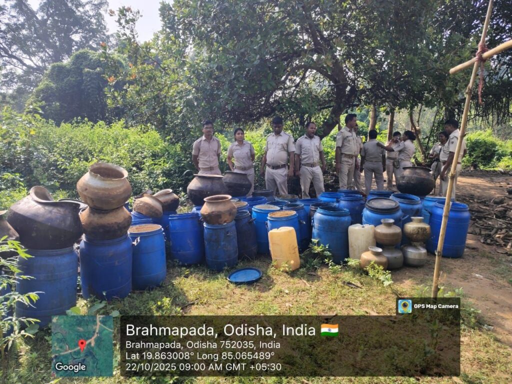 Khordha-22/10-In a joint operation conducted by Banapur Police and Excise Station, Balugaon, a major crackdown was carried out against illicit liquor trade at village Kotuala, Brahmapada under Banapur PS jurisdiction.