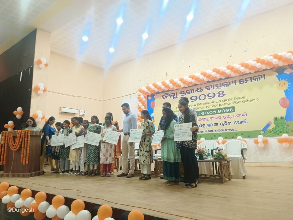 He said that the success of the mela can be achieved by coordinating with parents, teachers, students & all departments to achieve 100 percent success for Mission Vatsalya in Khordha district. He said that the mela will be successful.In Every six months, the progress of students in their education, health & spiritual development will be measured through this mela.Those who have scored more than 60 percent marks will be included in this scheme.Therefore,  Collector, Mr.Rana  encouraged every student to show their commitment to include themselves in this scheme. Dipali Das, Pinki Singh, Subhalakshmi Dalai, Maheswar Giri, who have scored more than 60 percent marks in the +2 examination & Jamuna Nayak,Sibani Nayak, Sriman Rabindra, Rashmita Hembram, Barsha Priyadarshini, N. Ganesh, Sabitri Mallick, Soumya R.Mohanty, who have scored more than 60 % marks  in the HSC/CBSE exams, were given ₹4,000 each to strengthen this scheme & wished a bright future for all children.Two successful beneficiaries of the scheme, Debsmita Hota & Chinmayee Bisoi, shared their inspiring experiences.On the occasions the guests of honor were  President Child Welfare Committee Ranjita Panda, District Social Security Officer Dilip Kumar Hial, Additional District Social Welfare Officer, Susama Mohanty,UNICEF, Advisor Ghasirama Panda spoke about the various aspects of this  mission Vatsalya Yojana.